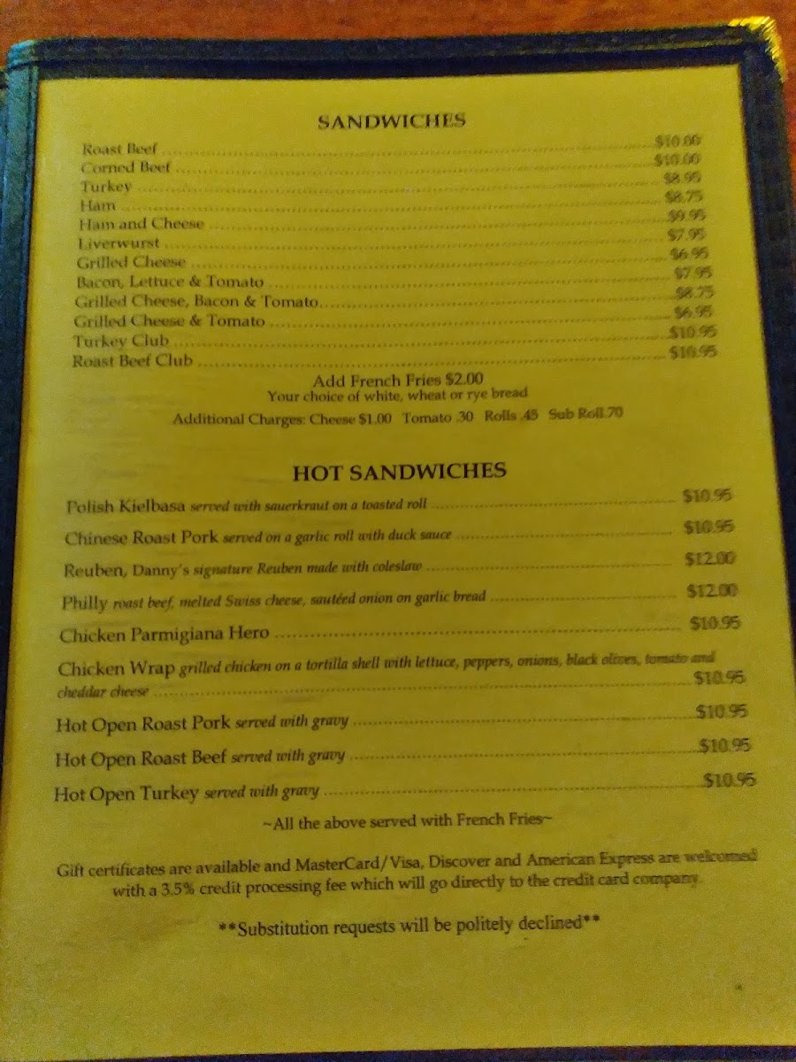 Introducing the menu at Danny's, a hidden gem located at 178 Kingston Ave, Wurtsboro, NY. Known for its inviting atmosphere and friendly service, this eatery has quickly become a community favorite. Their hot sandwich selection showcases mouthwatering options like Polish Kielbasa, Chicken Parmigiana Hero, and a delectable Philly that promises to satisfy any craving.